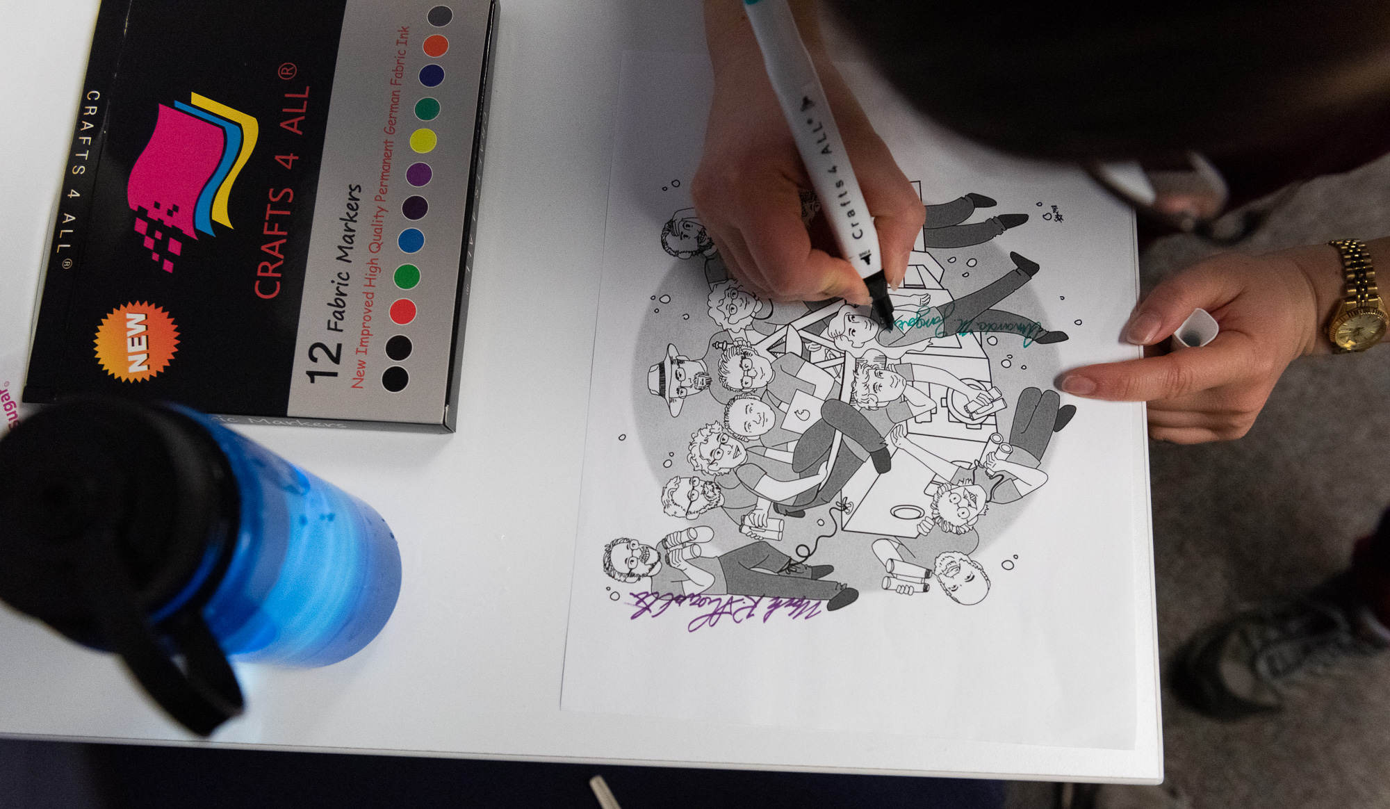 | Amanda signs our awesome team portrait, by Tod's daughter Sandra Muller |