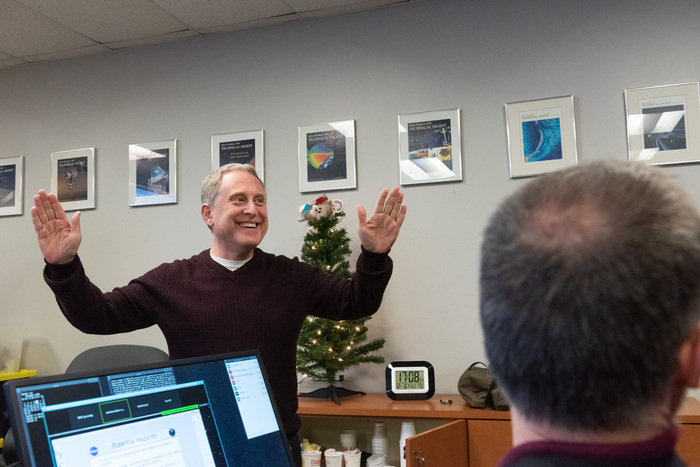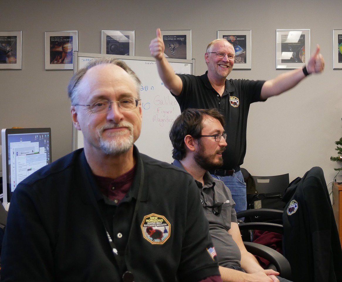 | Derek Nelson, center, is the head of New Horizons OpNav at KinetX. |