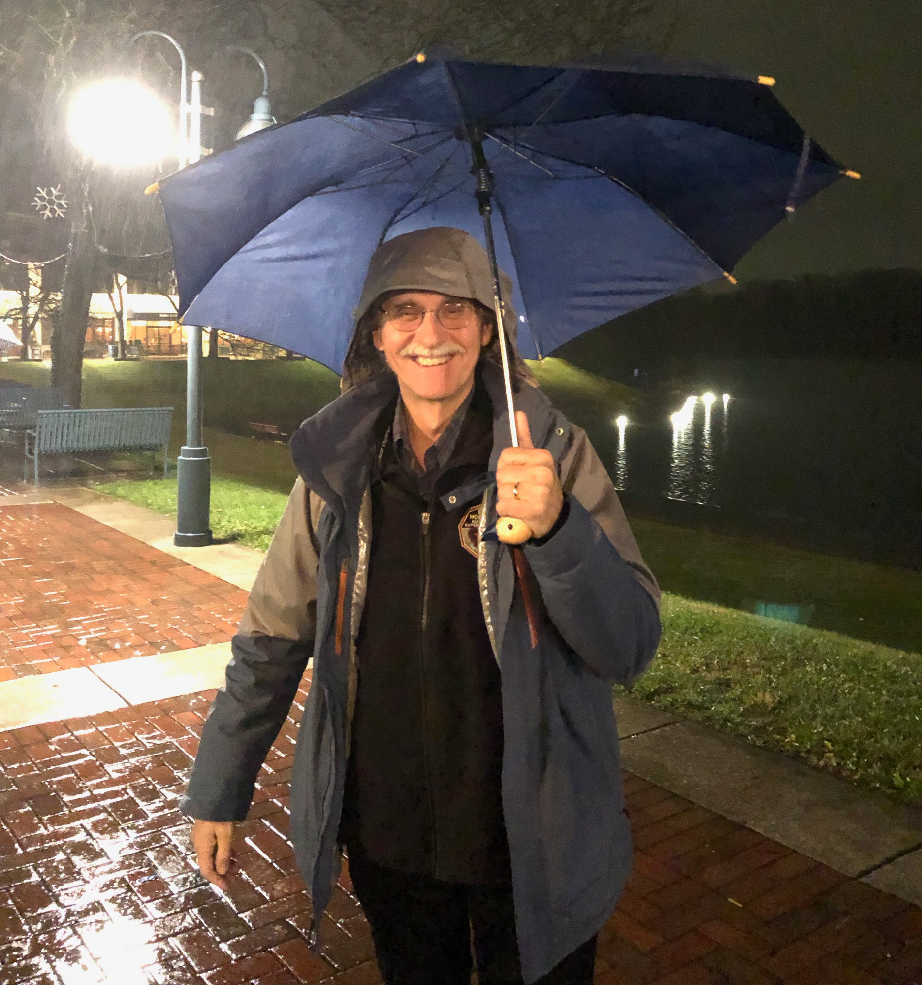 | Mark Showalter has emerged victorious over the dust particles! Photo by John Spencer. |