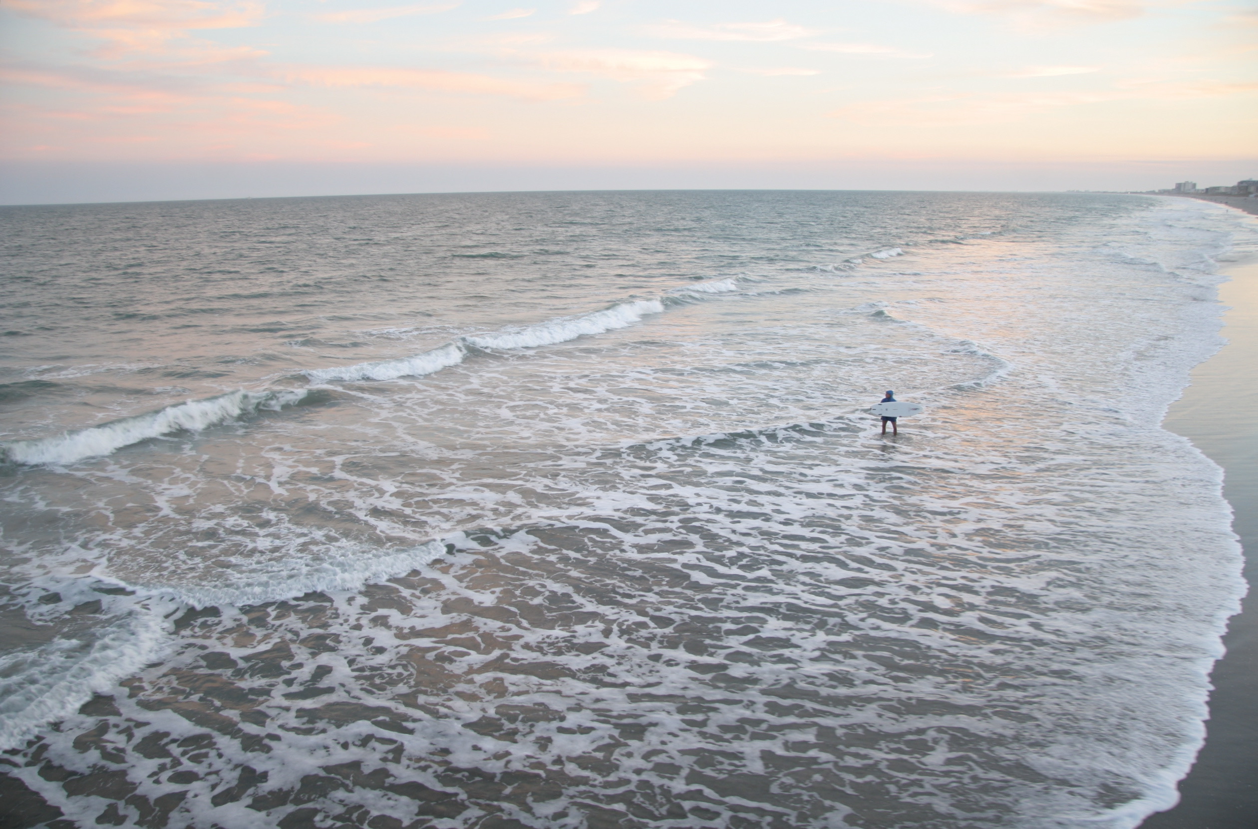 | I hang out and study surfers from the pier. (I did get in the water for some boogie boarding later on.) |