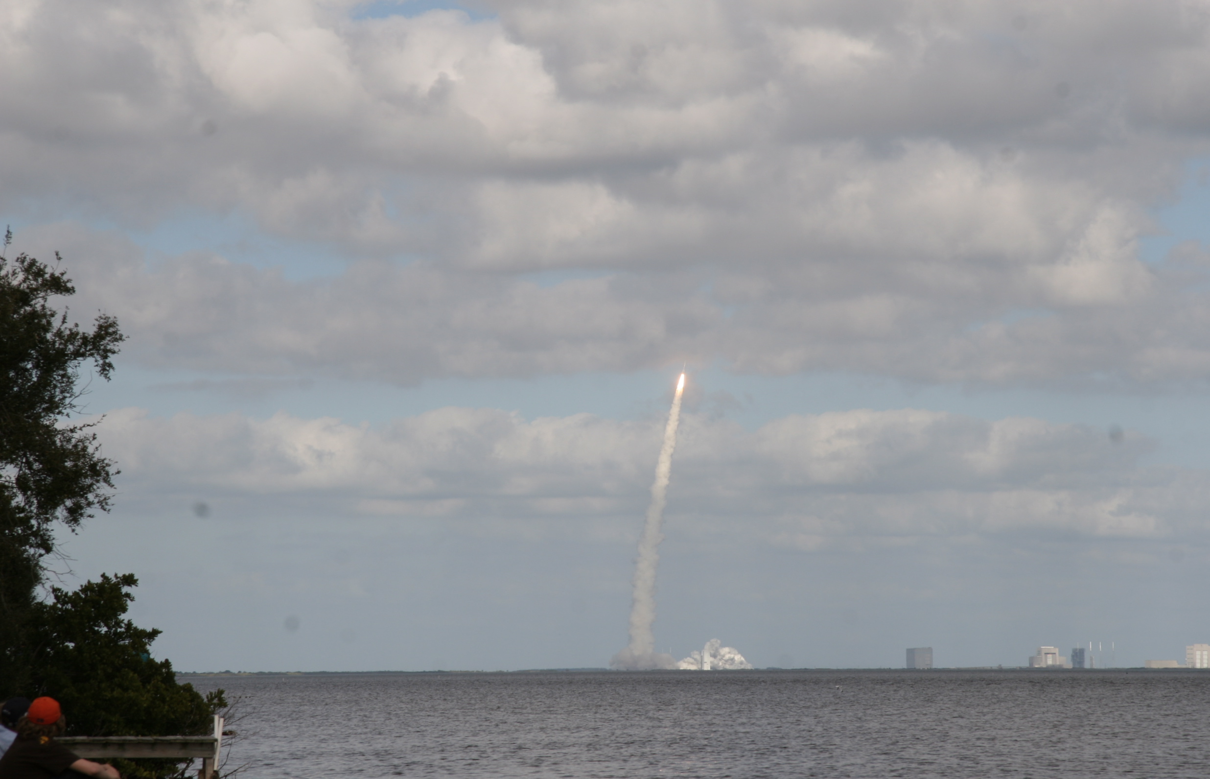 | A minute or two into flight, the launch vehicle's out of sight. |