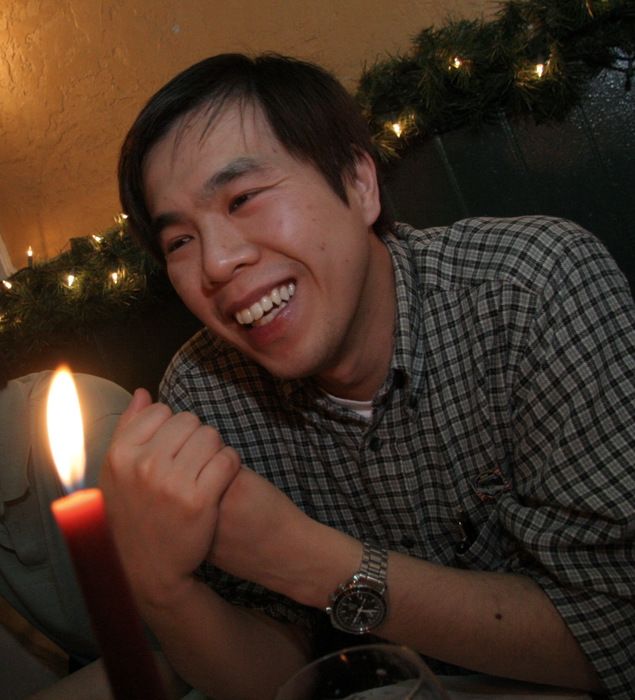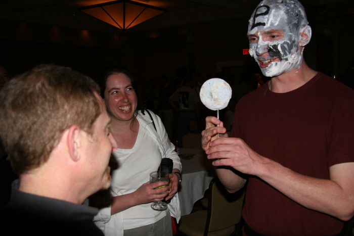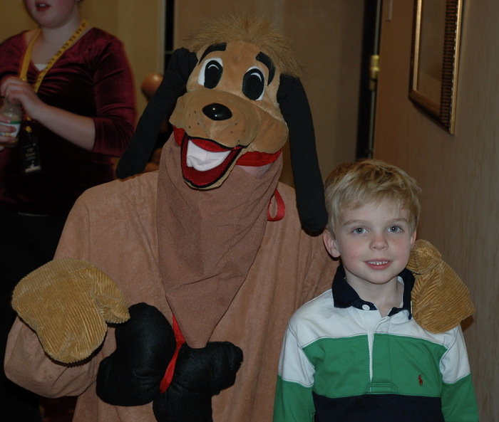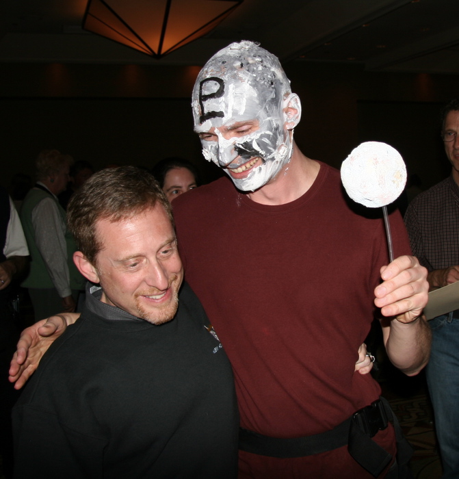| "Alan -- you asked me if I could dress up as Pluto for the reception? I didn't know if you meant Pluto-the-dog, or Pluto-the-planet..." (And that's Charon in front of me.) | |