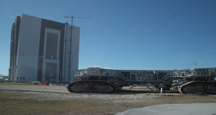 | The space shuttle's transporter (`crawler'), next to the vehicle assembly building (VAB). | |
