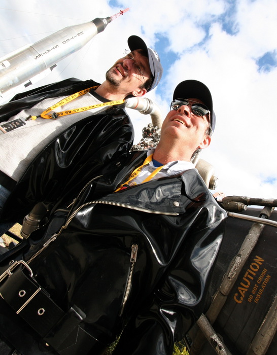 | McKinnon kids check out those space-shuttle main engines. | |