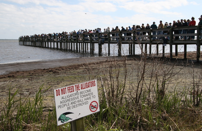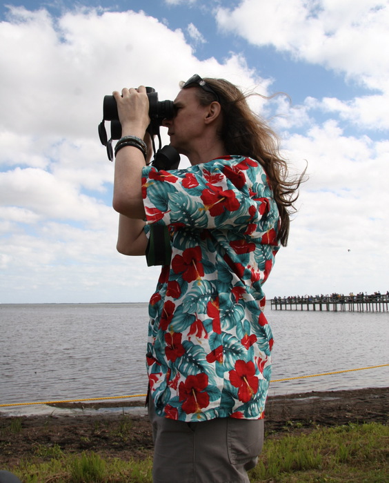 | Launch attempt #3 is set for January 19, 1308 EST. We load into the busses again. This time due to a shift in wind patterns, we are now about 10 miles S of the pad, at a public beach, very near the highway we drove in on to get here several hours earlier. A good number of people are on the pier, but due to safety limitations, a we exceed the maximum weight limit and go to the beach instead. Of course, the beach has other risks... | |