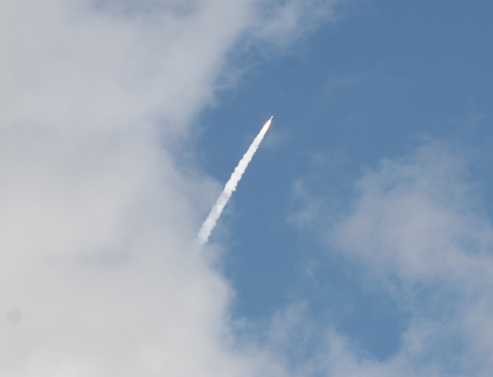 | A minute or two into flight, the launch vehicle's out of sight. | |