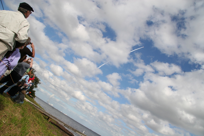 | We are waiting for a 6 minute period of sub-33 knot ground winds in order to launch. Launch has been postponed: 1324 EST, 1344, 1404, 1424, 1444, in 20-minute intervals, corresponding to the cadence time of NASA's weather balloons. | |