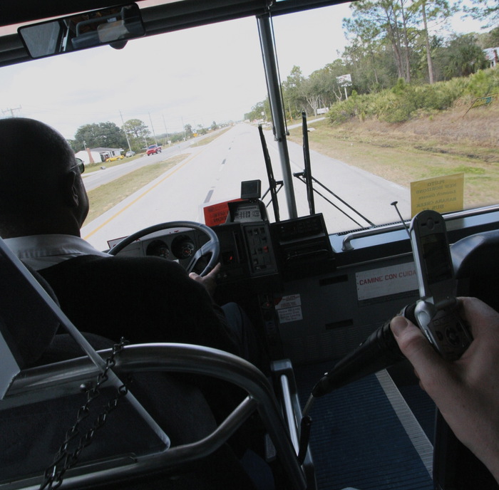 computer, and I talk to our bus driver Earl and ask if I can commandeer the PA
