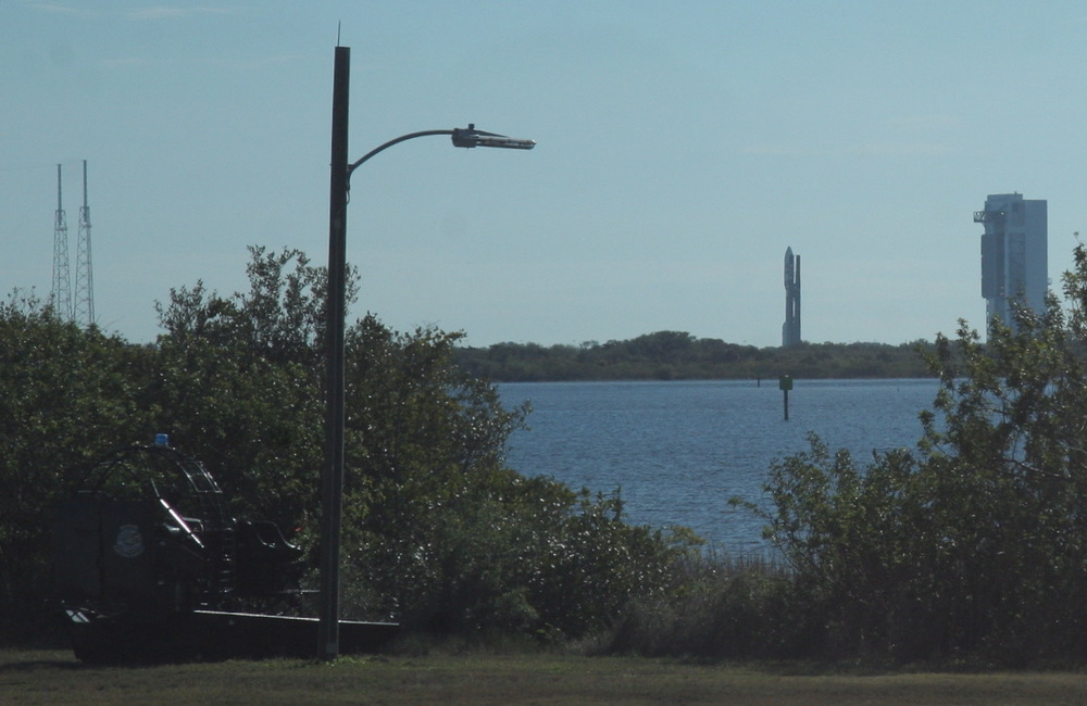 The space shuttle's transporter (`crawler'), next to the vehicle assembly building (VAB).