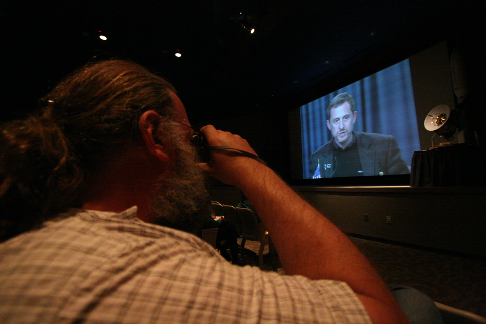Hal takes a picture of his boss. Note the small Pluto-the-dog cut off by the NASA camera on Alan's left.