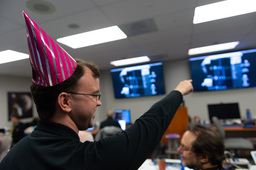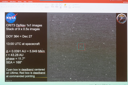 Here are some photos from the flyby of Arrokoth, taken during the 10 days that the science team re-assembled at APL for the flyby. Arrokoth is tiny compared with Pluto (diameter of 20 km vs. 2400 km), so the flyby was comparably compressed in time. The target was only resolvable (i.e., more than a single pixel) about 24 hours before the flyby, compared with several months of resolved observations when we were on approach to Pluto in 2014.