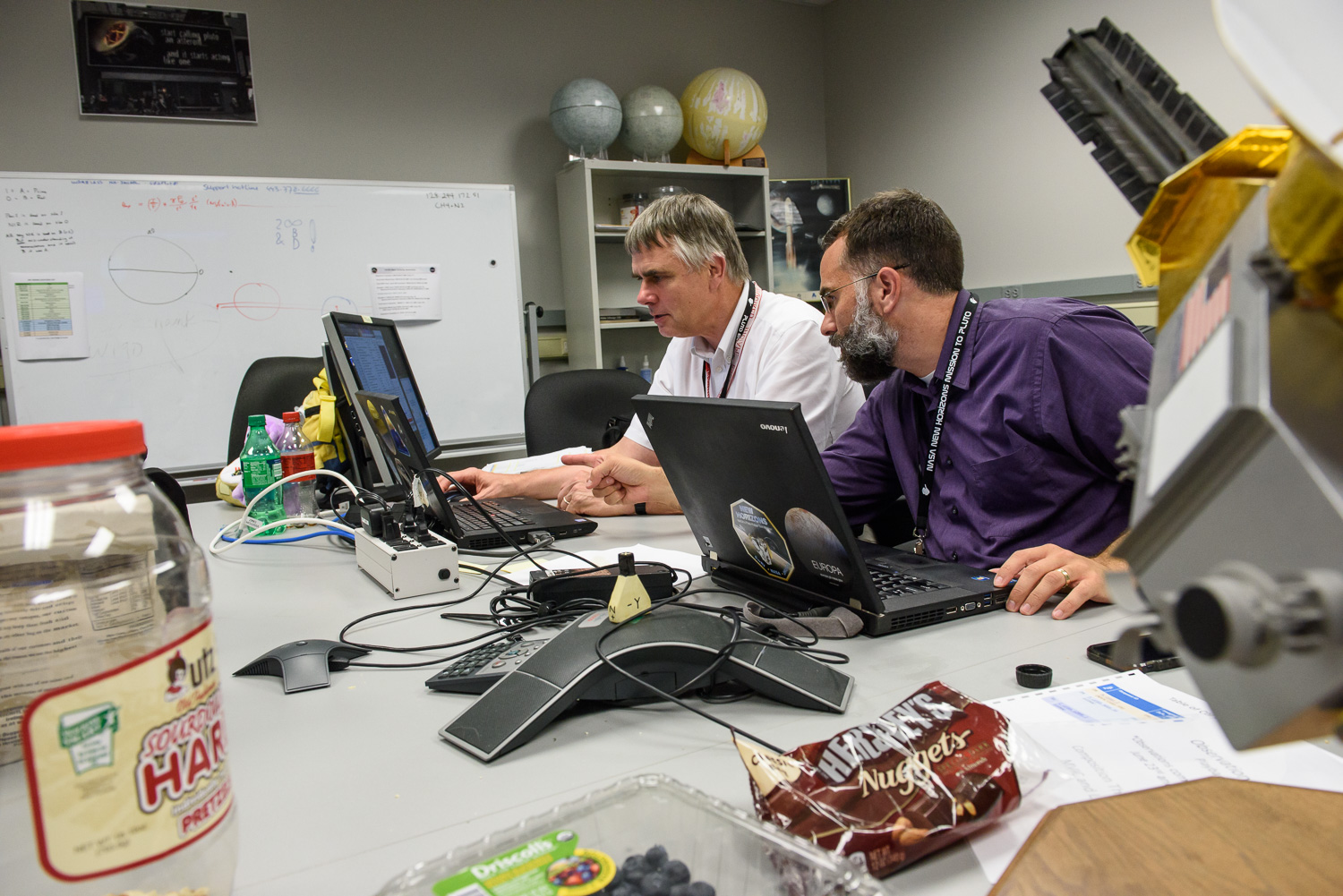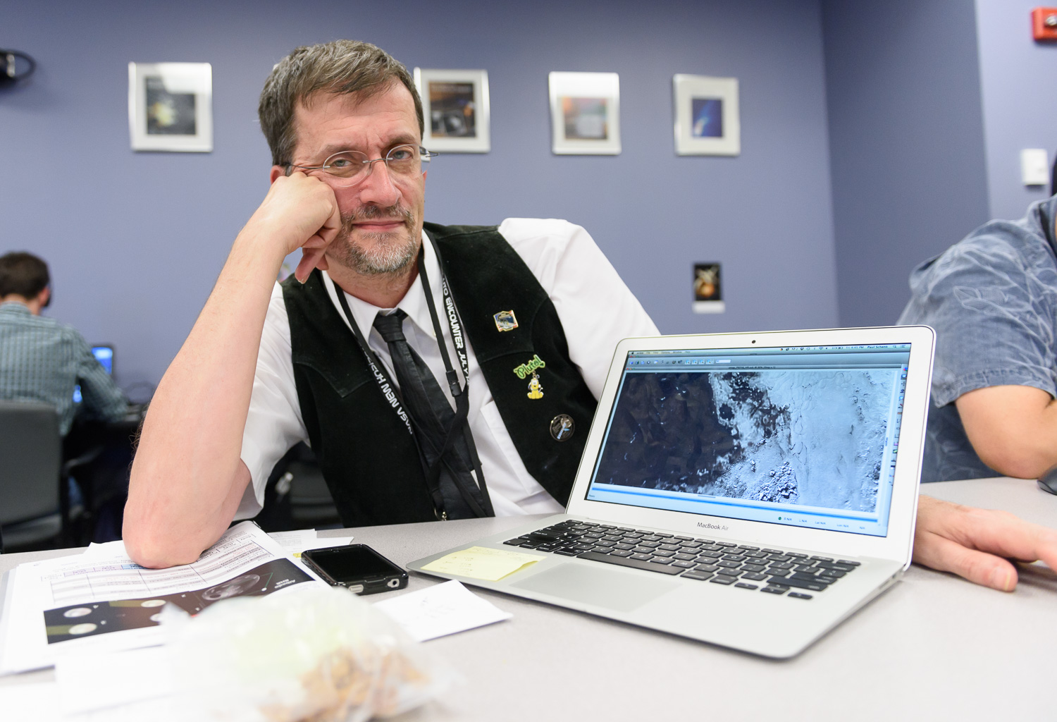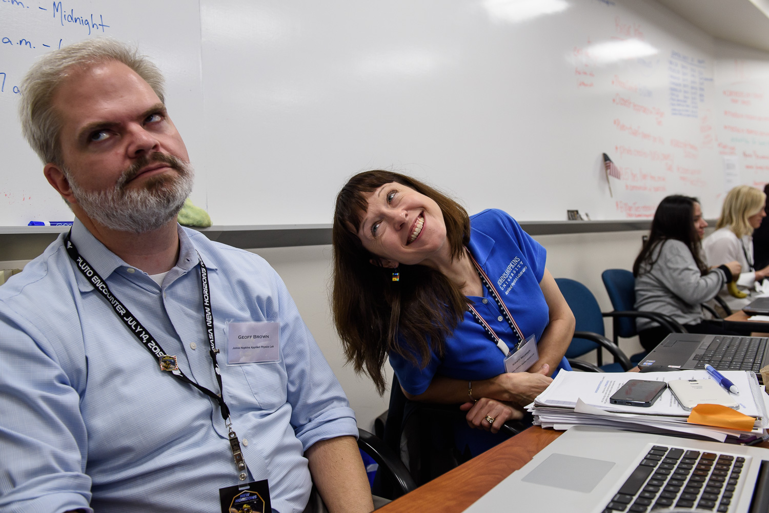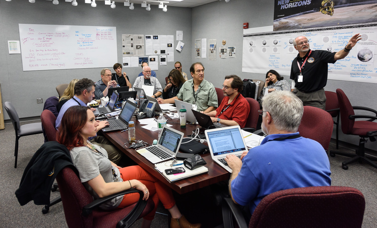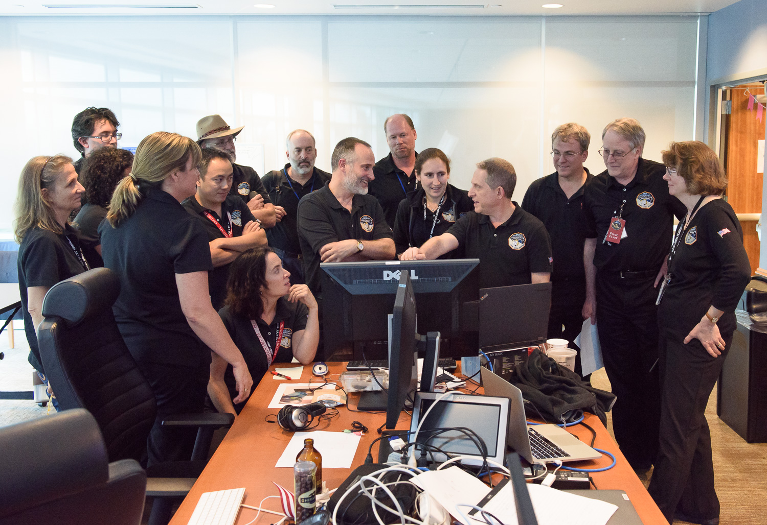 Usually APL is a secure 'no photos' zone. But New Horizons is a historic mission, and it would have been a loss to not be able to document the human side of the encounter. Through special arrangement with the mission and APL, several members of the New Horizons team were given permission to take pictures in APL's Building 100, where the Science Team was based. Although I spent most of my time doing mission work, I usually took my camera with me, and was able to photograph the team freely throughout the encounter. The team was spread over a half dozen large rooms at APL, working in very close proximity for most of the encounter. Many of the engineers and managers are in Building 100, although some are on APL's main campus.
