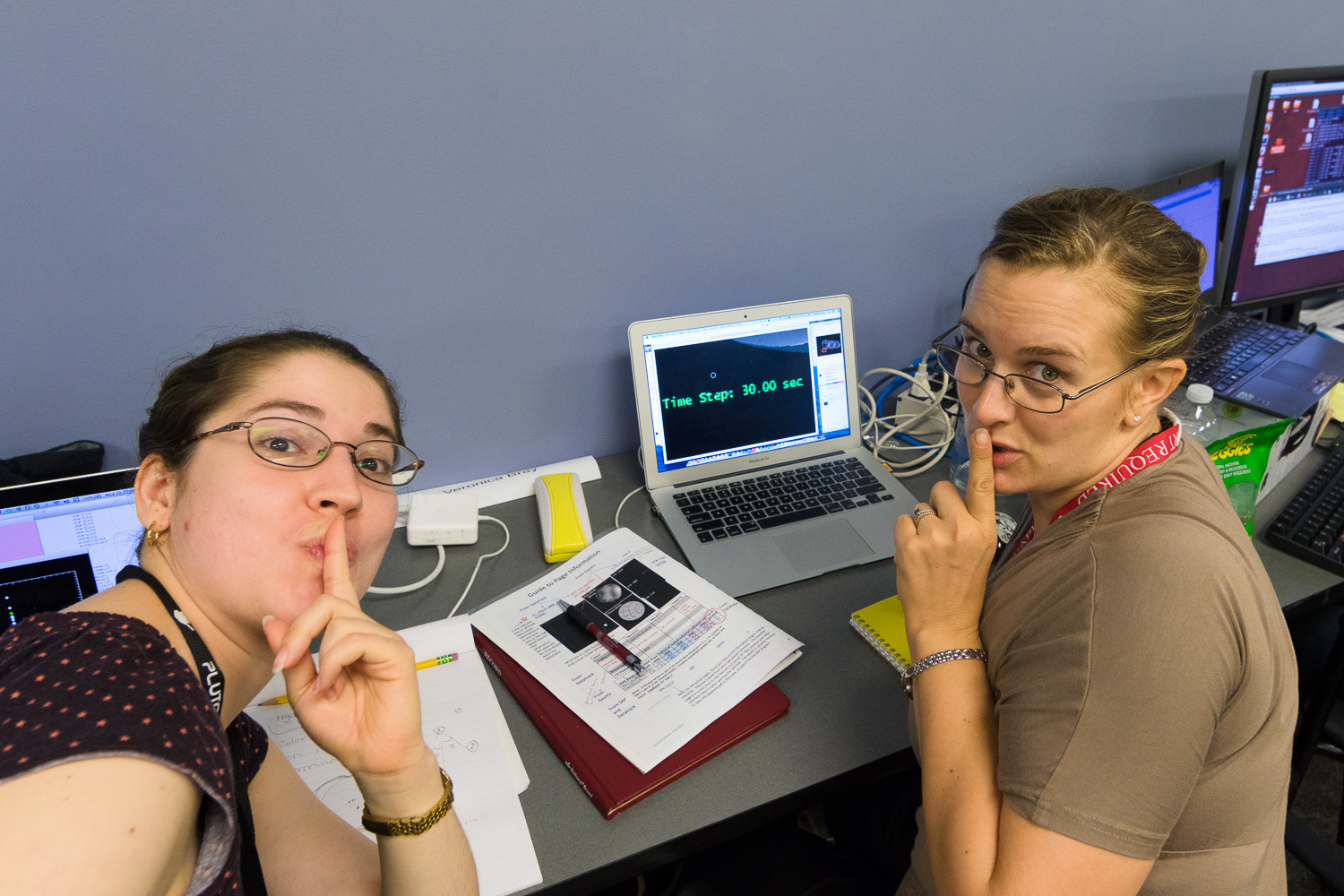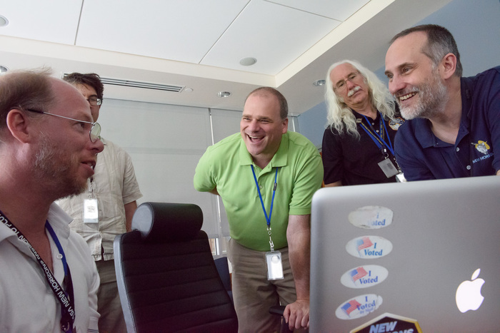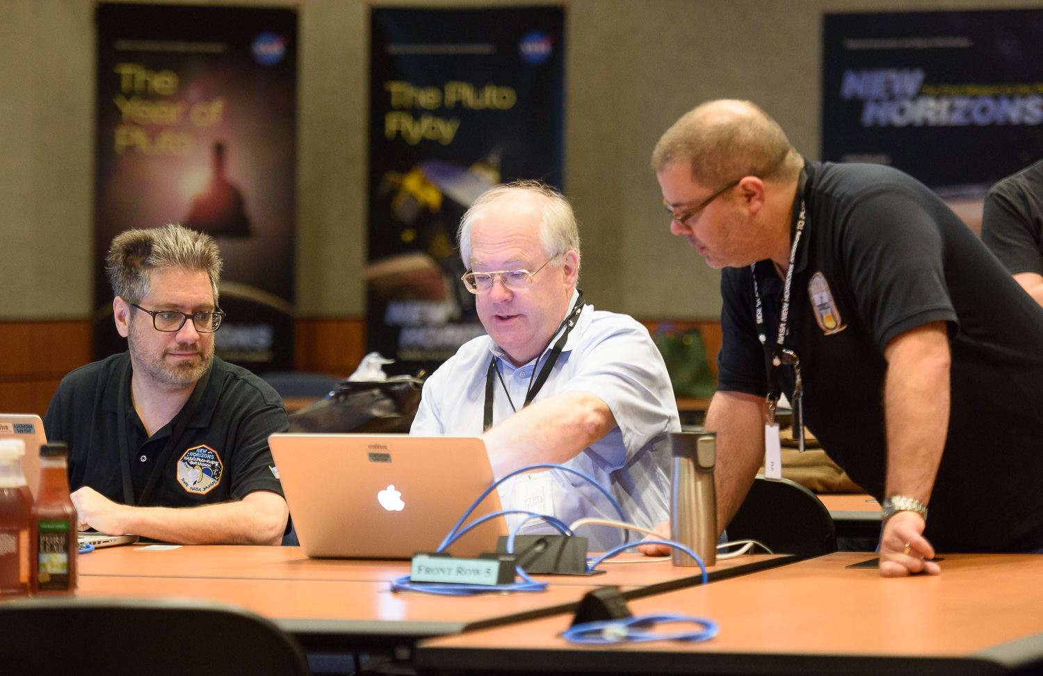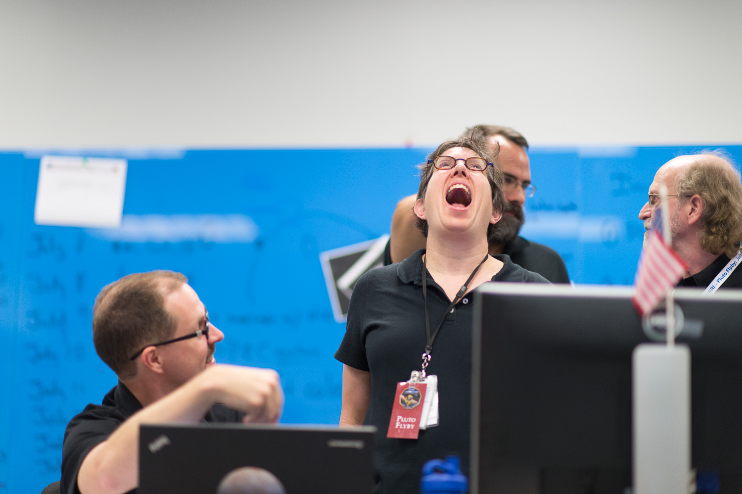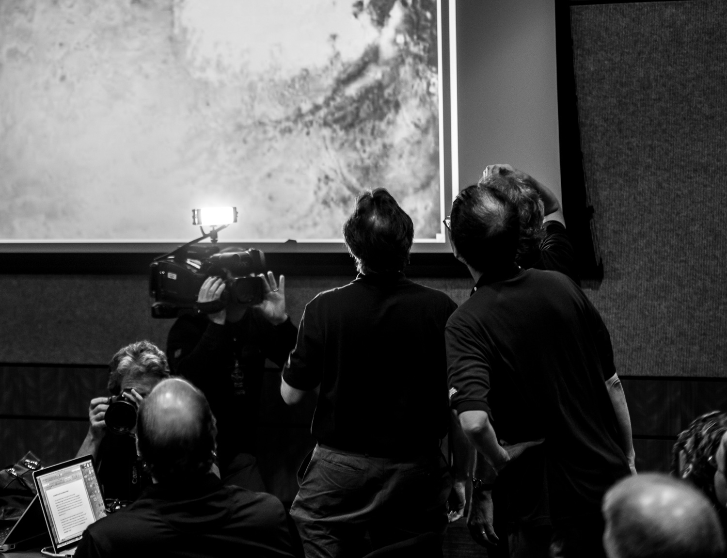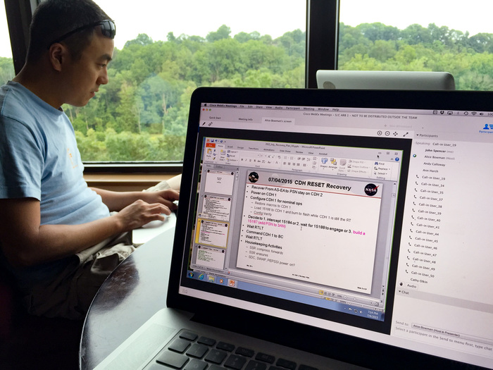 Usually APL is a secure 'no photos' zone. But New Horizons is a historic mission, and it would have been a loss to not be able to document the human side of the encounter. Through special arrangement with the mission and APL, several members of the New Horizons team were given permission to take pictures in APL's Building 100, where the Science Team was based. Although I spent most of my time doing mission work, I usually took my camera with me, and was able to photograph the team freely throughout the encounter. The team was spread over a half dozen large rooms at APL, working in very close proximity for most of the encounter. Many of the engineers and managers are in Building 100, although some are on APL's main campus.