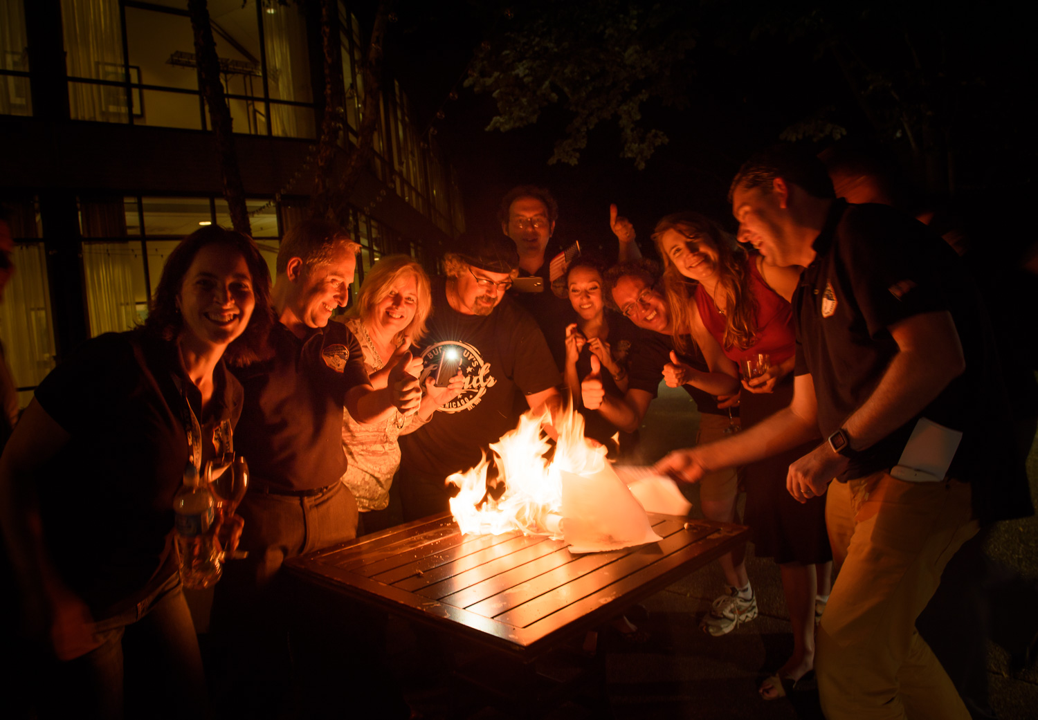 | Back at the hotel, after the celebrations are winding down. Alan: "Just one more thing to do, OK? That contingency plan? Burn it." |