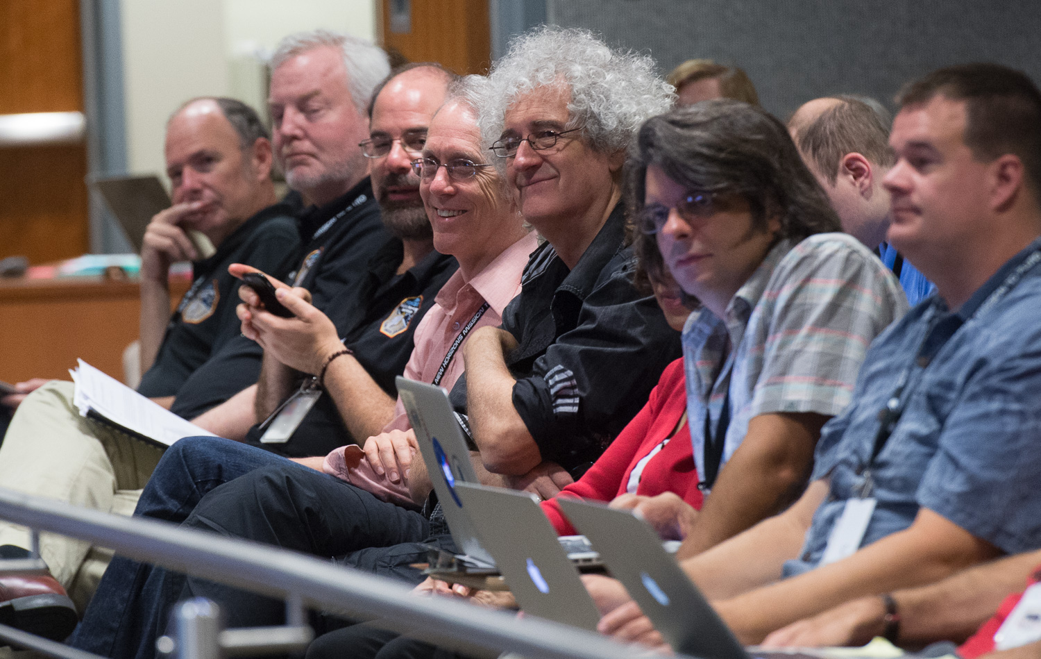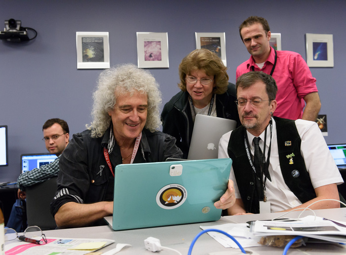 | "And in the front row, we have a new team member. You might know him from his work on the zodiacal dust, or... well, please welcome, Brian May!" |