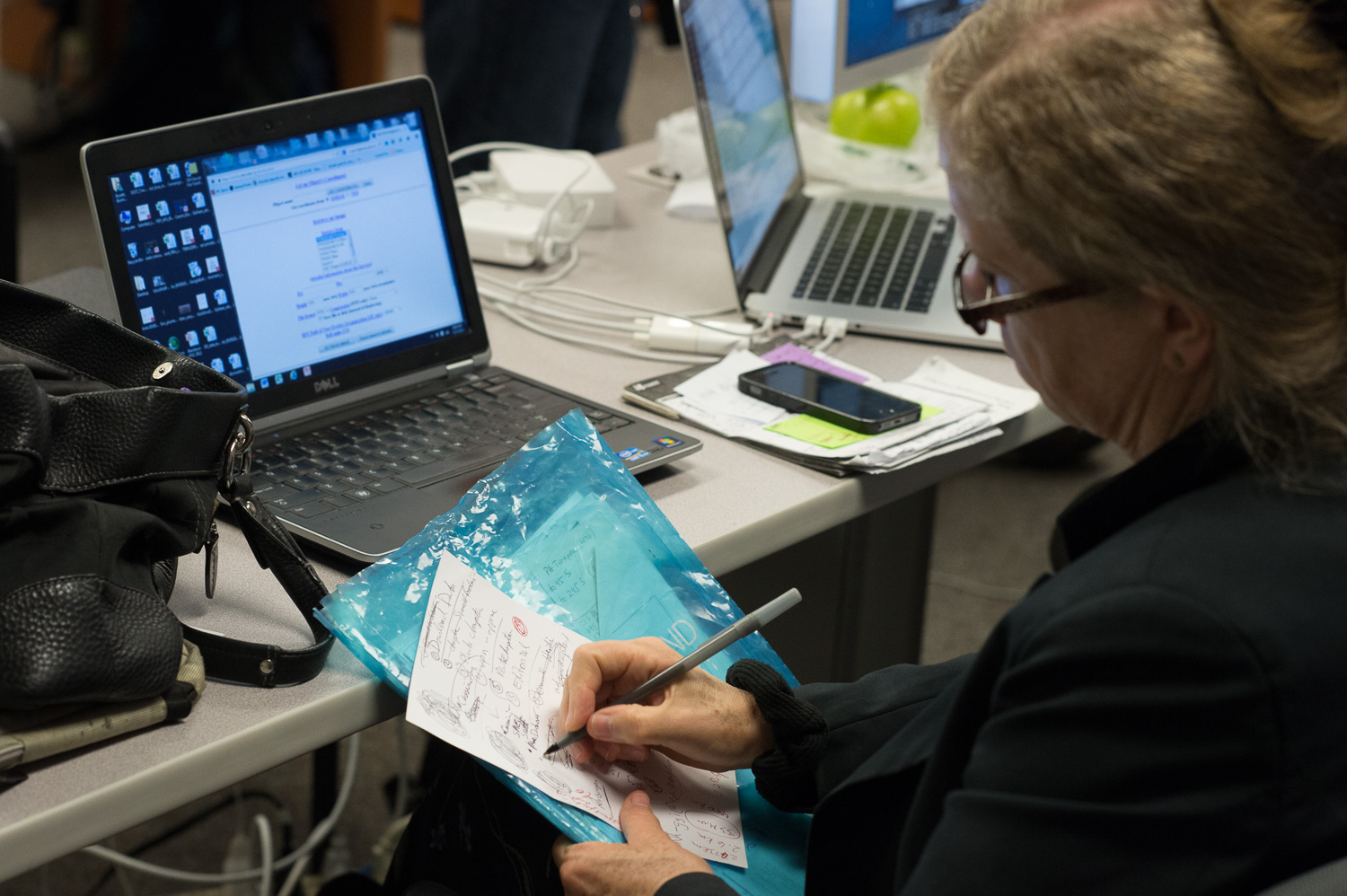 | In the GGI room, Amanda Zangari and Veronical Bray have a plan for that Playbook. Photo by Stuart Robbins. |