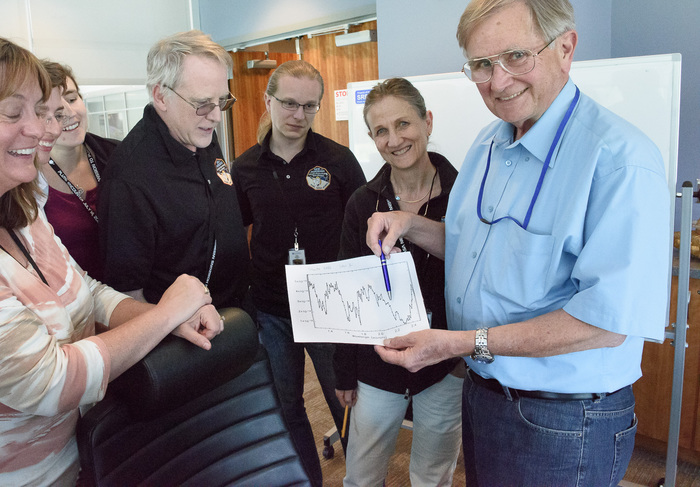 | Rick Binzel, Jane Spencer, and Geoff Moore, post-flyby. |