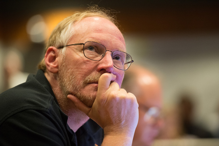 | Hal Weaver at the final NASA SHBOT decision review. Photo by John Spencer. |
