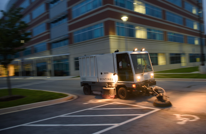 | It's early morning at APL -- just the street cleaner. OK, plus a handful of scientists and engineers who have been there all night... |