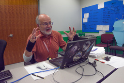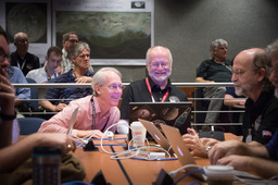 Most of the photos here show other people doing things, and not me, so some people have asked what I was doing at the encounter. I did much of the planning for the ring search and satellite search observations. (We found none of either.) And a lot of my work at the encounter dealt with maintaining and upgrading GeoViz, the visualization tool used by the science team to plan and analyze observations. I did a entry on NASA's blog about GeoViz, and a separate blog entry entry about photographing the mission.