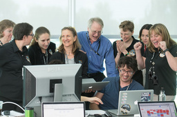 Usually APL is a secure 'no photos' zone. But New Horizons is a historic mission, and it would have been a loss to not be able to document the human side of the encounter. Through special arrangement with the mission and APL, several members of the New Horizons team were given permission to take pictures in APL's Building 100, where the Science Team was based. Although I spent most of my time doing mission work, I usually took my camera with me, and was able to photograph the team freely throughout the encounter. The team was spread over a half dozen large rooms at APL, working in very close proximity for most of the encounter. Many of the engineers and managers are in Building 100, although some are on APL's main campus.