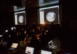Some events, especially on the encounter day, were at the Kosiakoff Center, which allows cameras. And none of us were allowed in the Mission Operations room, across the street on APL's main campus. For those, you'll have to see the photos from NASA's official photographer Bill Ingalls, and NH mission photographer Michael Soluri.