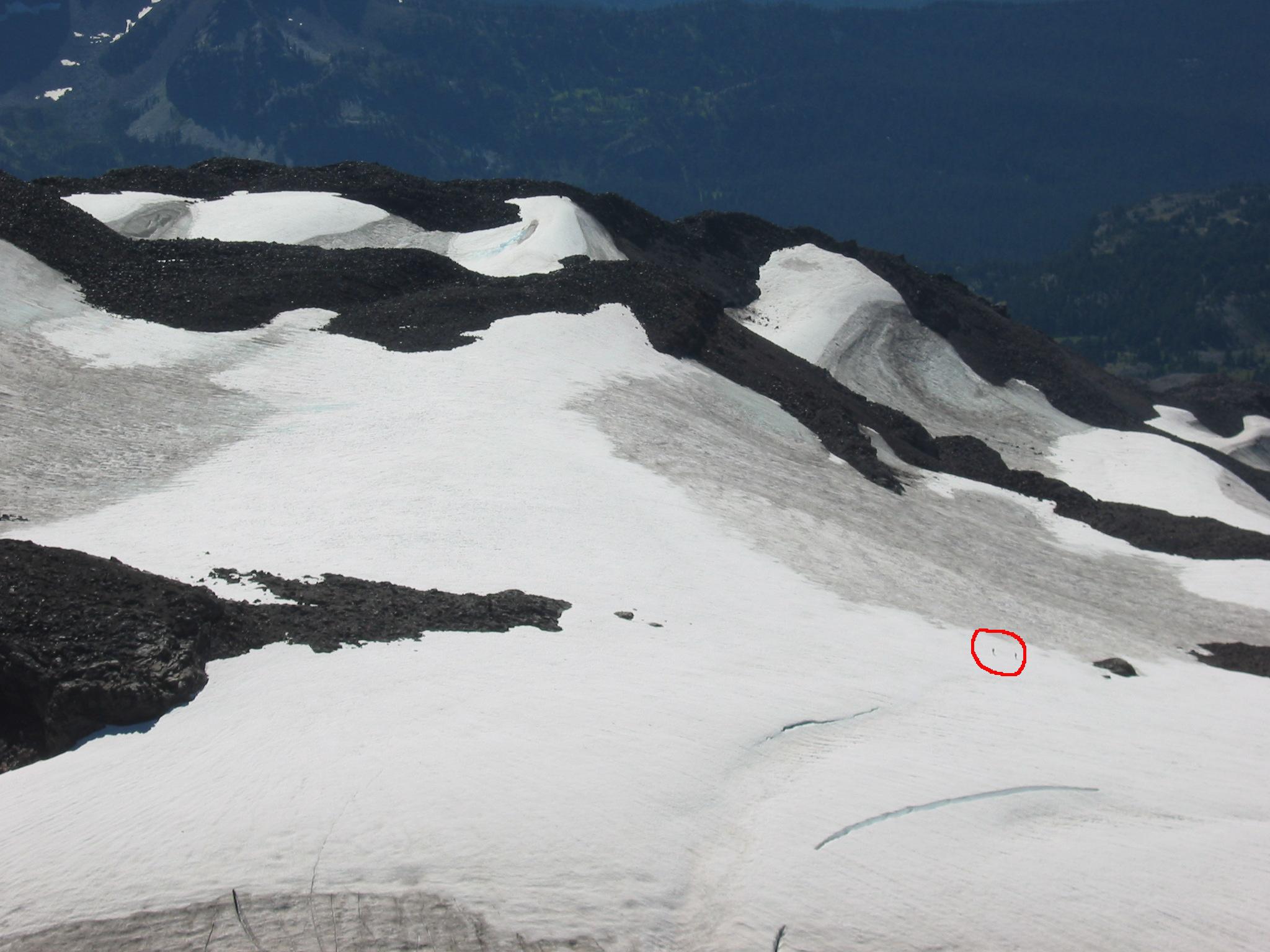 After being unable to contact JMT and Chris for our planned rendezvous, we spy two souls walking across the Collier glacier. Is it them?
