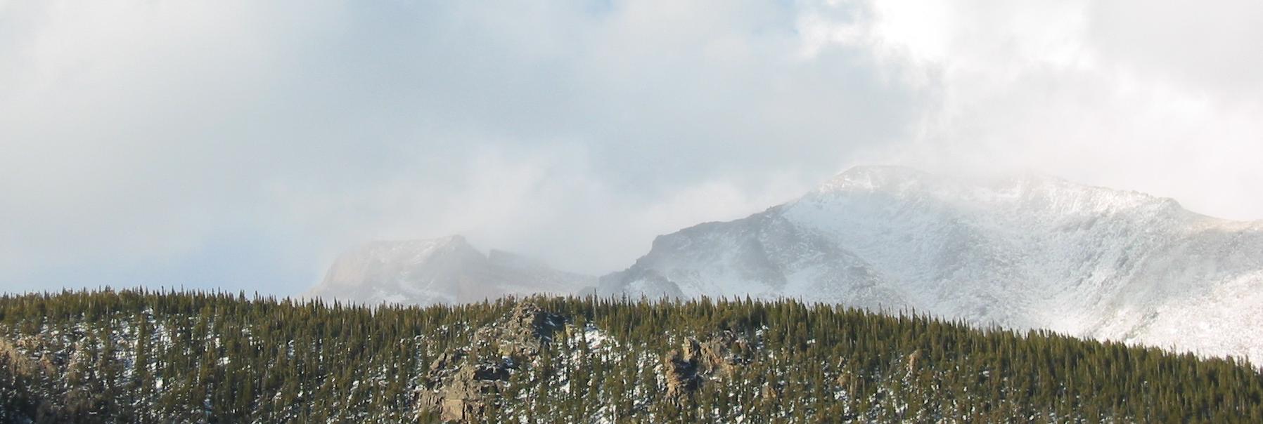 Longs Peak and Mt. Meeker from the south. (NB: The first recorded ascent of Longs, in 1868, approached from this side, finishing up along the standard Narrows and Homestretch portions.)