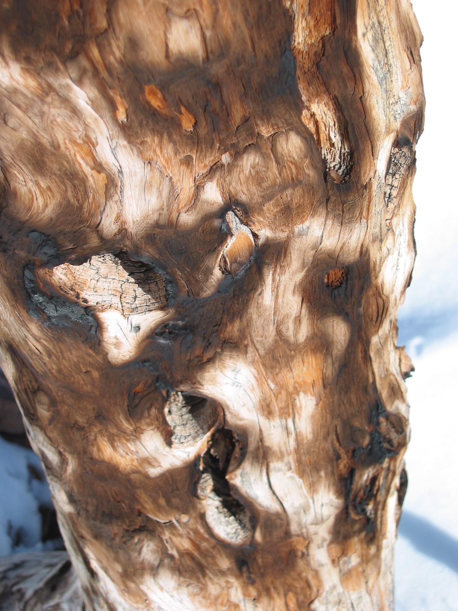 A tree has been gently scarred.