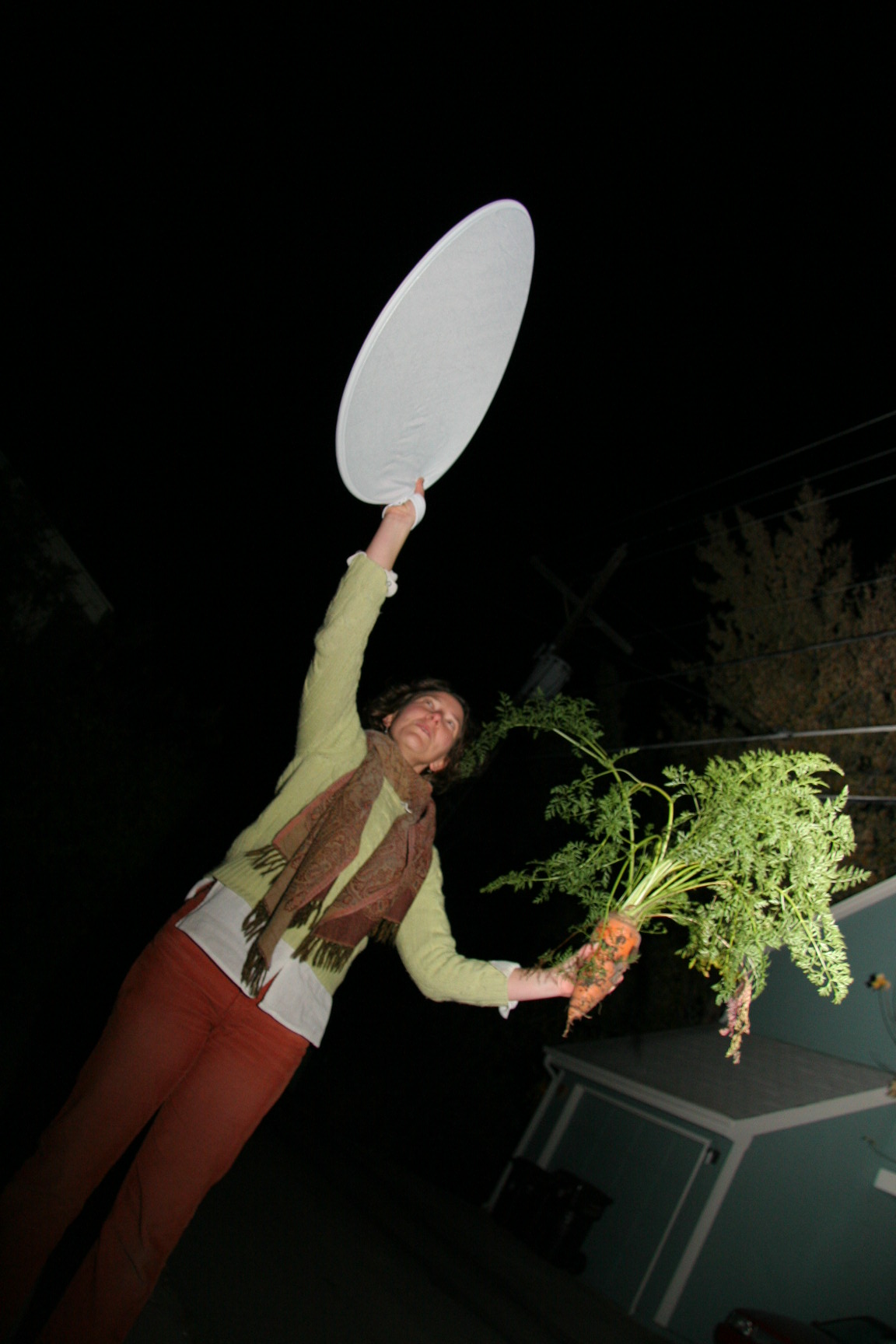 Abigail demonstrates proper use of the reflector, while I misuse the camera.