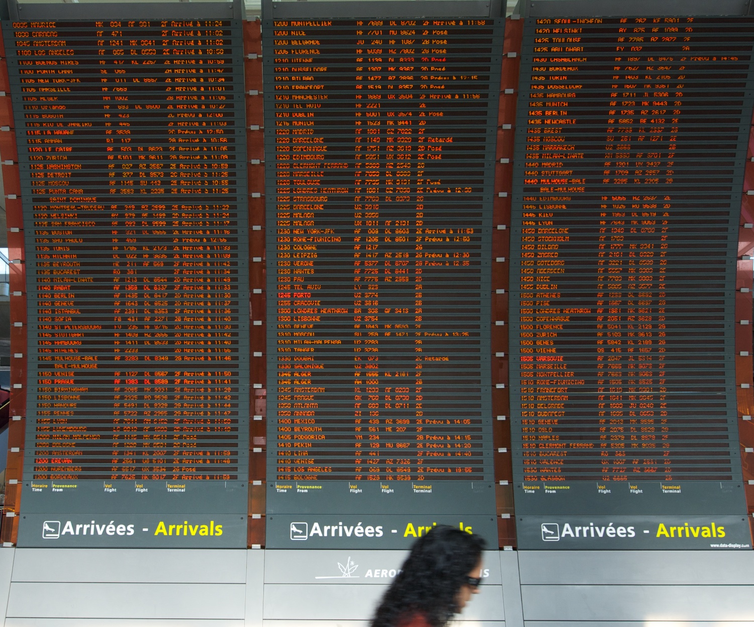 | The amazing arrivals board at Charles de Gaulle. |