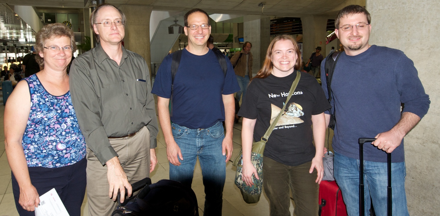 | Joanie and Marc Buie, Scot Rafkin, Michelle Kirchoff, and Tim Michaels (all SwRI) gather at Charles De Galle waiting for the TGV to Nantes. |