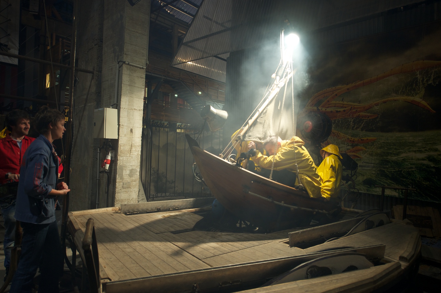 | The magicians at their controls. Lightning and rain have kicked in here. |