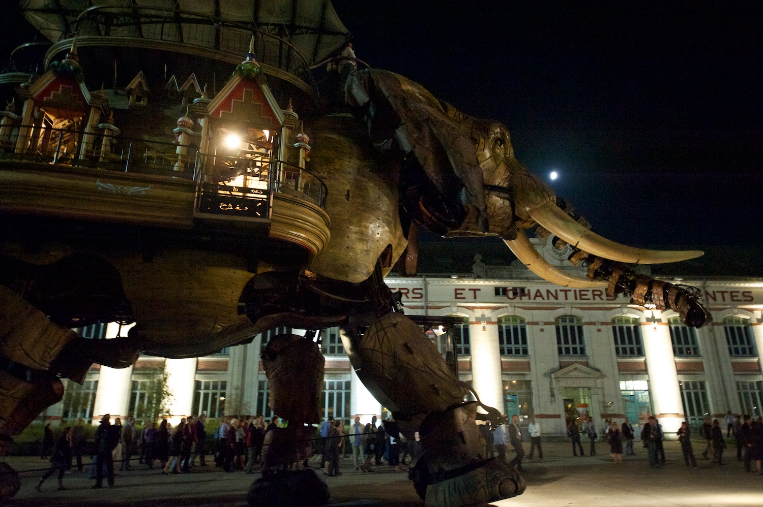 | OK, hang on. We're at the banquet reception, held at Les Machines de L'Ile in Nantes. This is totally out of control. It's like run by a crazy guy who had 20 billion dollars and decided to invest it all into the burgeoning market of steam-powered, mechanical, wood-and-iron sea creatures and elephants. It was utterly crazy and unbelievable. Jen Grier (PSI) is operating the squid. |
