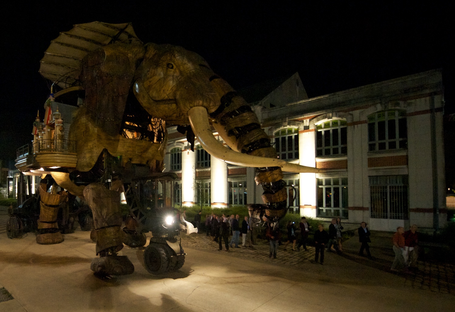 | Oh my god! He gets to drive it. This elephant was based in part on an earlier British elephant which had 22 drivers (several for the nose alone) -- no joke. |