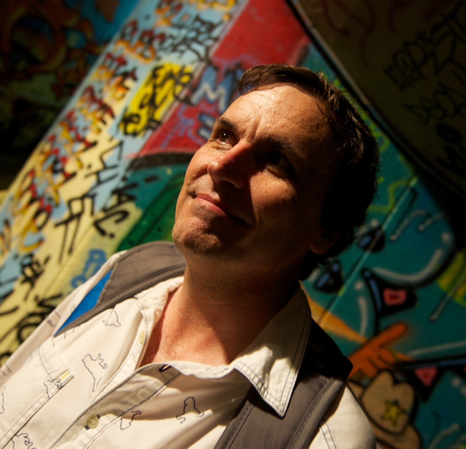 | Luke Dones underpasses the graffiti. |