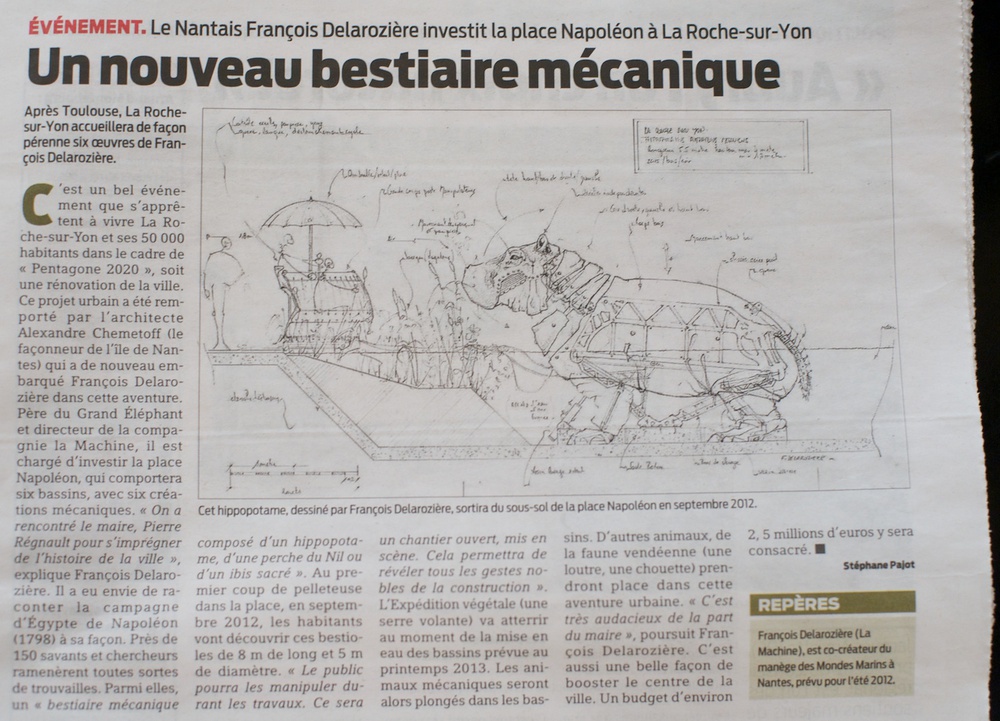 Whoa! OK, here I am out eating one of the famous Nantes buckwheat crepes, and I open up a local paper only to find this on page two! Fabulous news -- a new mechanical hippo is to be built!