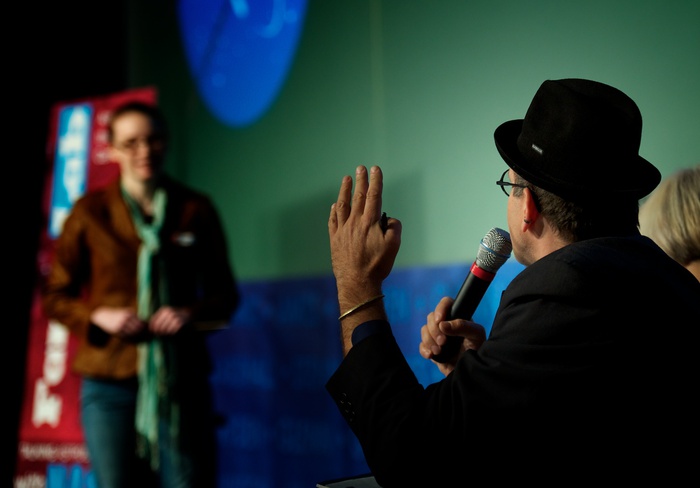 The auditorium at the National Geographic Explorers Hall, Washington DC, for the evening round. |