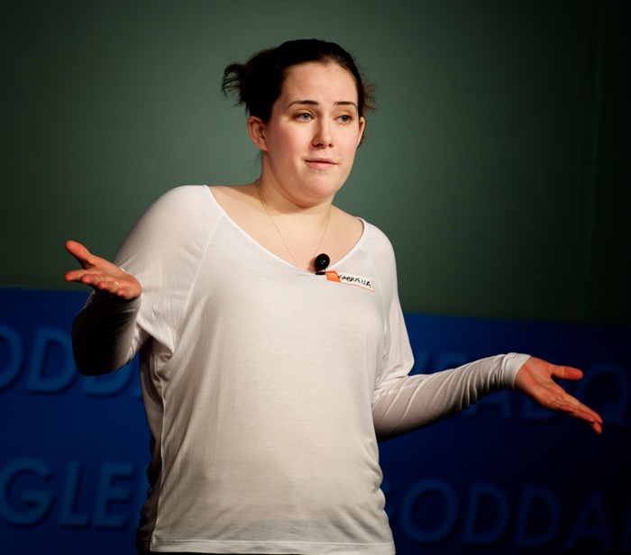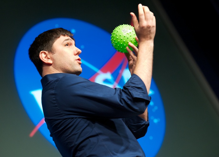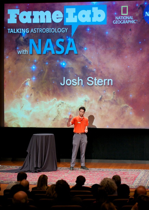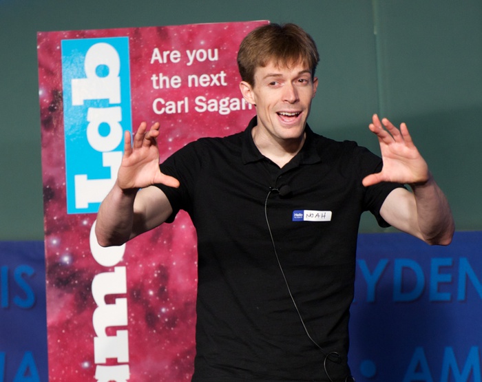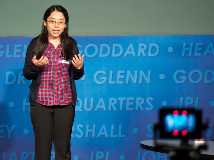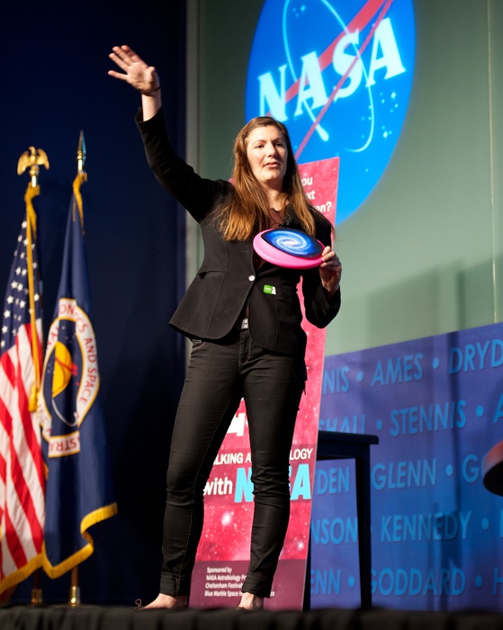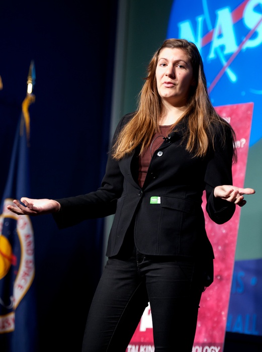MC's Daniella Scalice and Shawn Domagal-Goldman start off the morning at the James Webb Auditorium at NASA HQ in Washington, DC. |