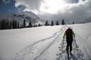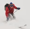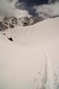 skiing down fabulous terrain in the valley above the hut, between Peak 10 and
