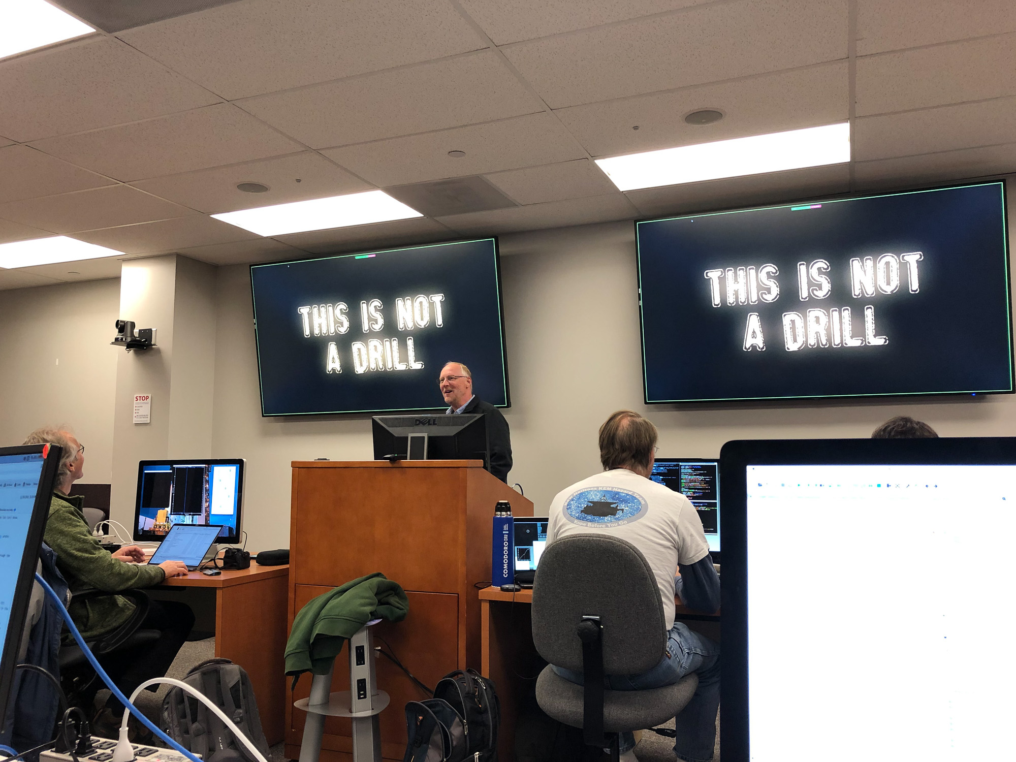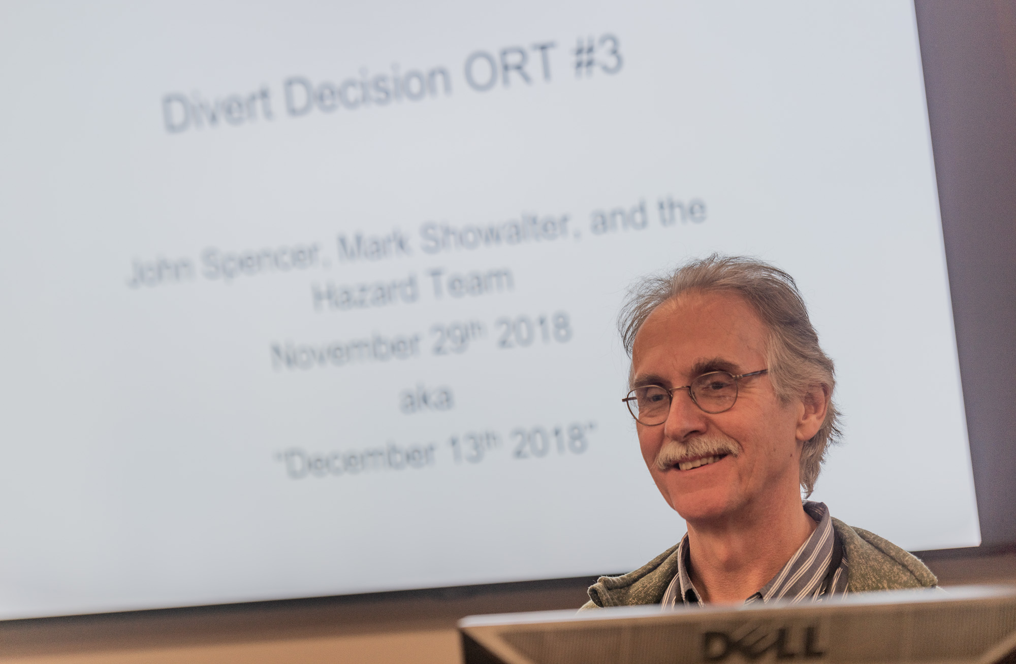 | Mark Showalter kicks off the TCM Divert Decision Meeting rehearsal. We had rehearsals for everything, including meetings. |