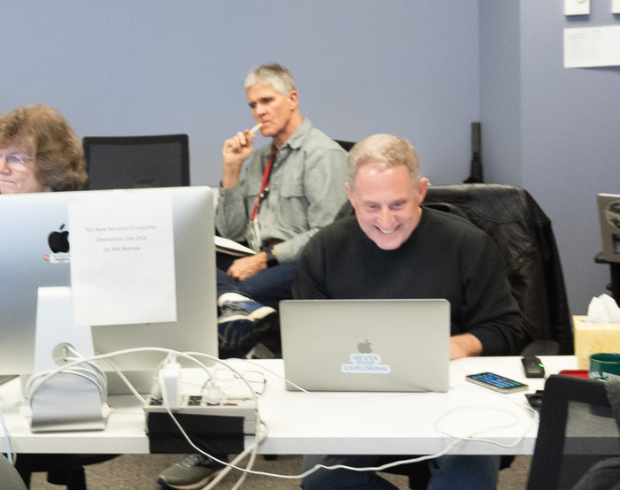| Simon, Amanda, and Anne -- all veterans of multiple MU69 occultation campaigns -- give Marc input on fits to the light curves and occultation data. |