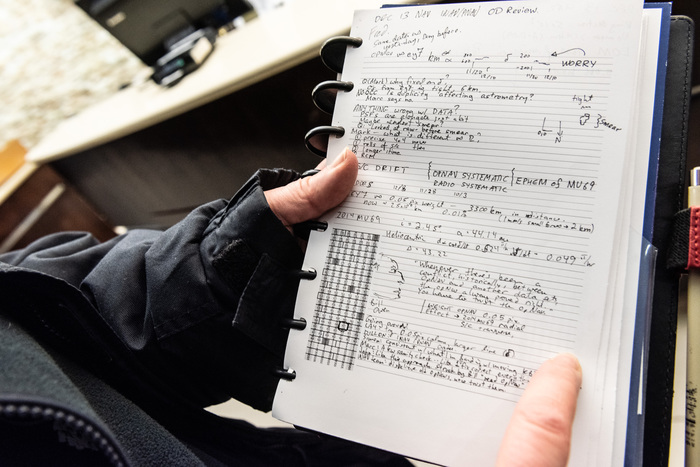 I came into the Geology room just as the ROTCOVER_364B observations came down and Tod started processing them. Tod became (by a few seconds) the first to see Arrokoth's resolved shape. I could tell he was 'in the zone,' so I hit record. He's drumming along to Steely Dan's "FM," while running his FORTRAN-based imaging code which has needed only minimal upgrades since first developed in on a PDP-11/70. Tod Lauer: "You know, I never in a million years thought that my career would take me to that place of 'on-demand image processing.' I was really happy to sit in my office and take my time to optimize my algorithms and really develop a great framework for image processing. And here we were -- there's like 30 of us in the room, everyone's shouting, and -- bam, the images are down, and it's a race to process them. I could never do that before -- I could never zone out in the chaos surrounding me like that. I had to really train myself to listen to music to tune it all out."