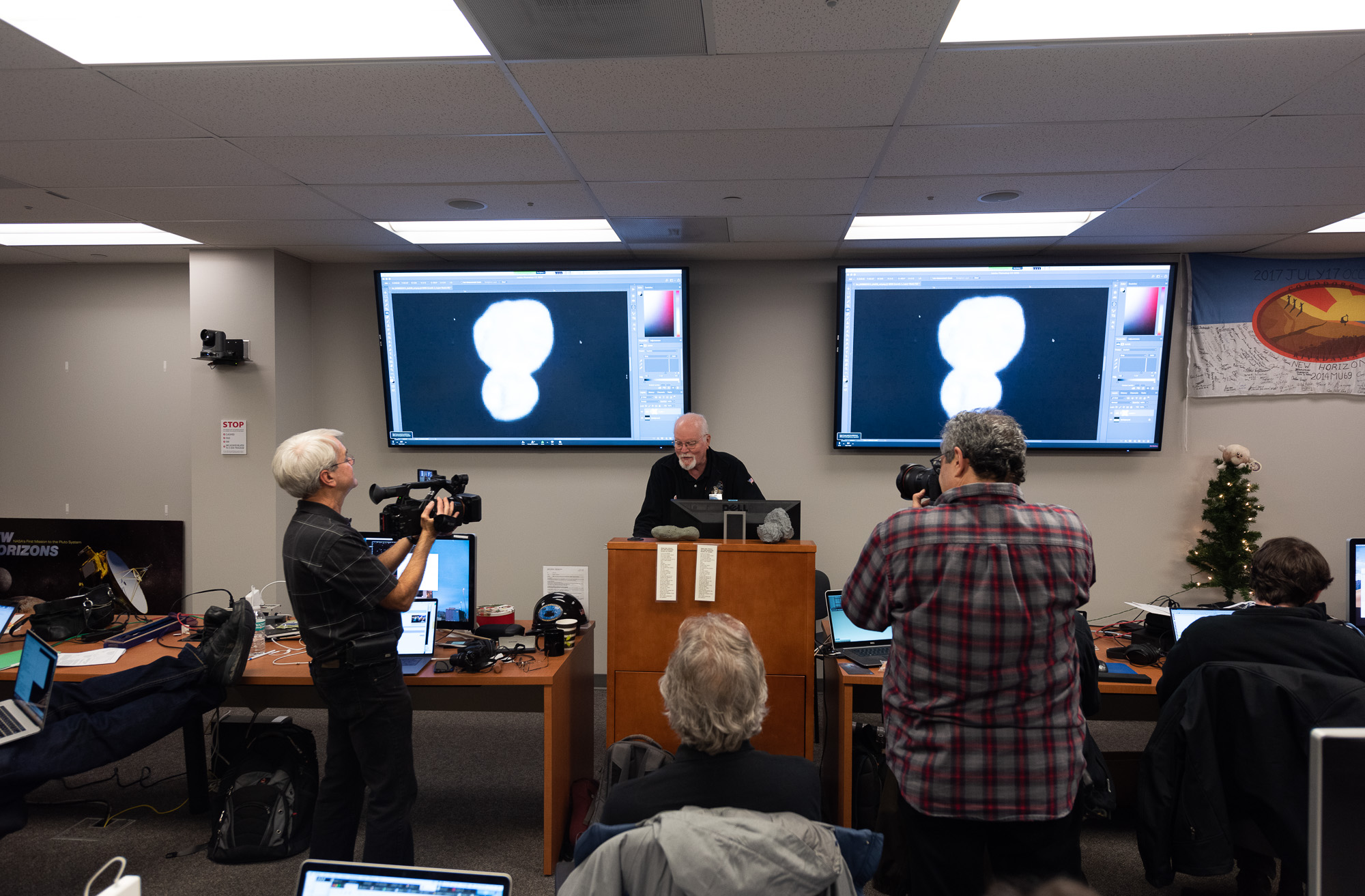 9 minutes after the image is down, and Jeff Moore has called to order the GGI Team Meeting. It's time to start getting down to business! There's APL's Lee Hobson shooting video, and APL's Ed Whitman on the right shooting stills.