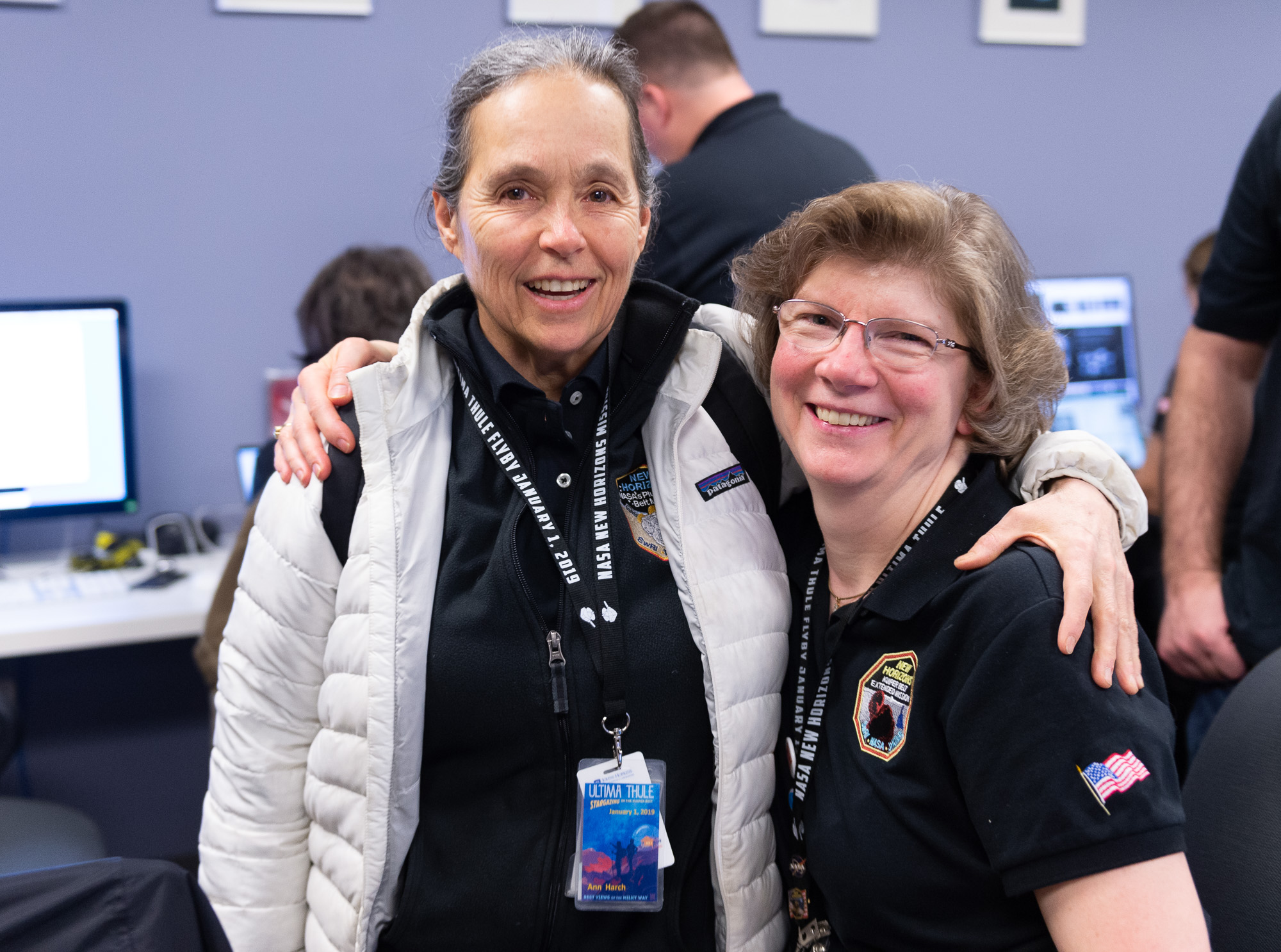 Ann Harch did a lot of the uplink sequencing. And check out that fancy name badge that she made up. They're done by her friend space artist Steve Thomas, and Ann printed up custom commemorative badges for everyone. Anne Verbiscer spent many months organizing the Arrokoth occultation campaigns in South Africa and Senegal.