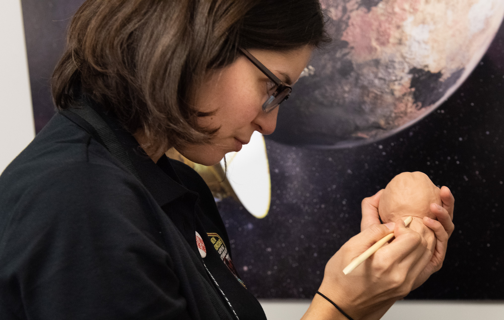 Mallory Kinczyk is making a 3D model of Arrokoth out of clay.