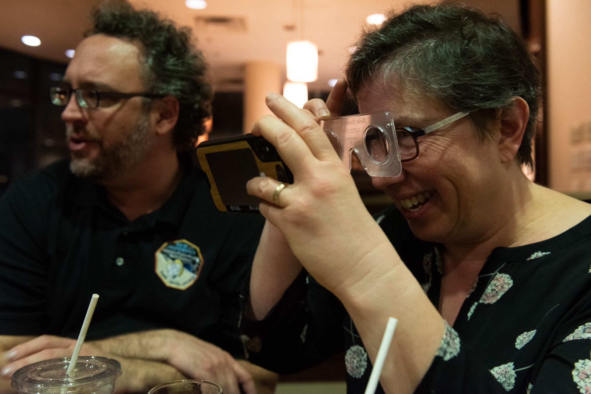 Leslie Young has been visiting the Sheraton Columbia for since about 1997 (?), when APL and SwRI first began to sketch out ideas for what turned into New Horizons. 21 years later, this is the last night many of us will be here for a long time. So we celebrate, by taking 3D pictures and handing around Brian May's 3D viewer to look at them.