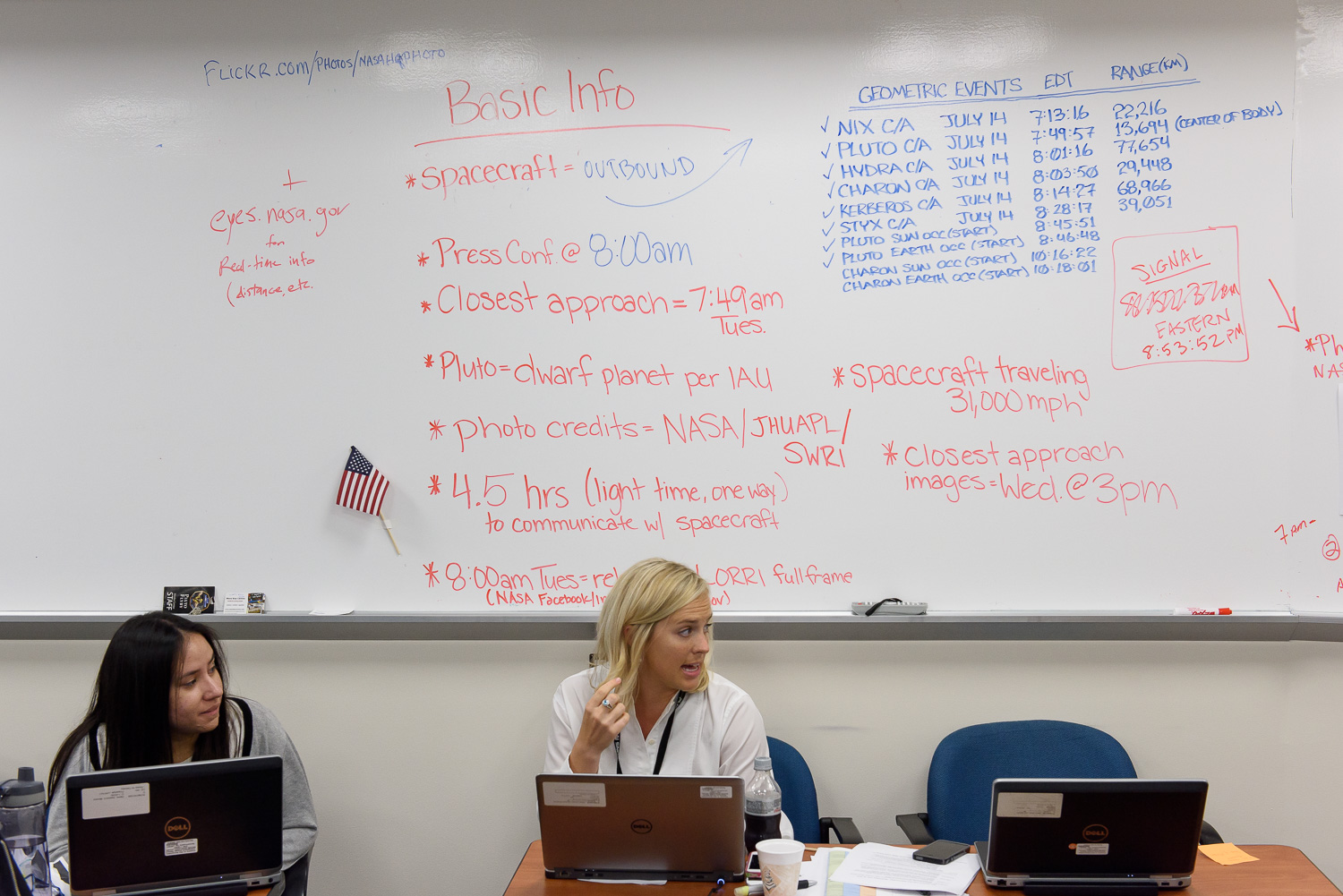 Usually APL is a secure 'no photos' zone. But New Horizons is a historic mission, and it would have been a loss to not be able to document the human side of the encounter. Through special arrangement with the mission and APL, several members of the New Horizons team were given permission to take pictures in APL's Building 100, where the Science Team was based. Although I spent most of my time doing mission work, I usually took my camera with me, and was able to photograph the team freely throughout the encounter. The team was spread over a half dozen large rooms at APL, working in very close proximity for most of the encounter. Many of the engineers and managers are in Building 100, although some are on APL's main campus.