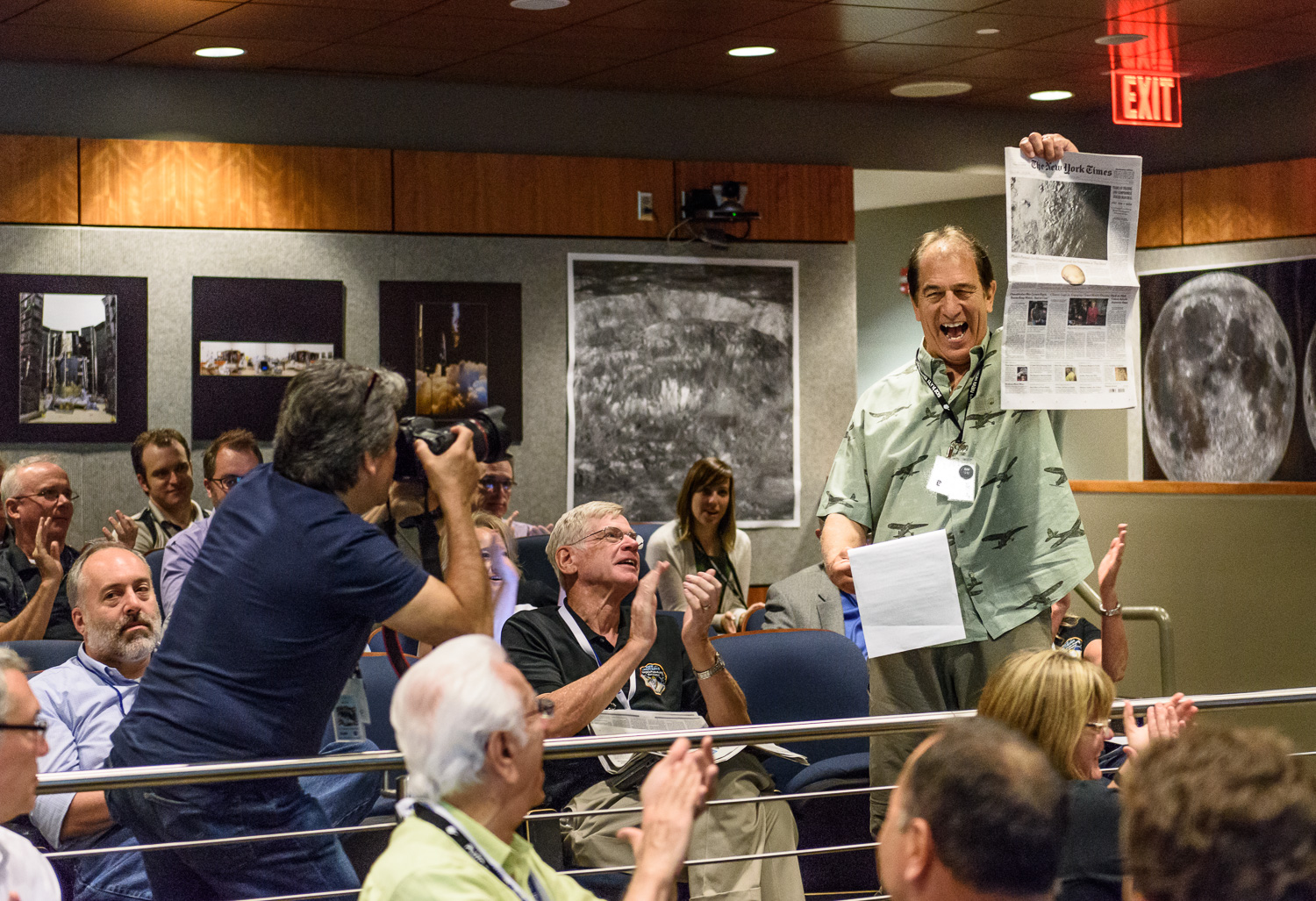 Some events, especially on the encounter day, were at the Kosiakoff Center, which allows cameras. And none of us were allowed in the Mission Operations room, across the street on APL's main campus. For those, you'll have to see the photos from NASA's official photographer Bill Ingalls, and NH mission photographer Michael Soluri.