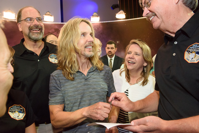 | We've received word that Styx (the band) is playing a show tomorrow night in Virginia. New Horizons has a special interest in Styx, because Pluto's smallest satellite, discovered in 2012, shares a name with the band. Oliver White, Cristina Dalle Ore, Josh Kammer, and Paul Schenk head across the APL campus to find the band. |